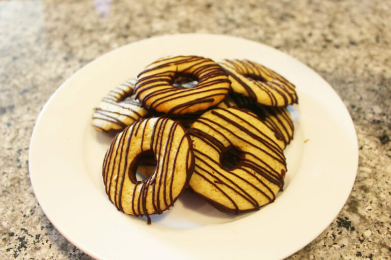 - Use a circle cookie cutter to cut out as many cookies as you can. Use a smaller circle cutter to create the hole in the center.