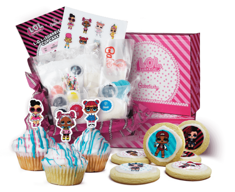 There are so many fun things to bake with kids; one thing that children of all ages enjoy in particular is cupcakes! Baketivity is proud to offer you a children’s baking kit featuring L.O.L. cupcakes! This kit offers you a double surprise. There are twelve L.O.L cupcake toppers included, and your kids won’t know which dolls are included until they start baking! In addition to the L.O.L. doll cake topper mystery, there is also a hidden surprise in the center of each cupcake.