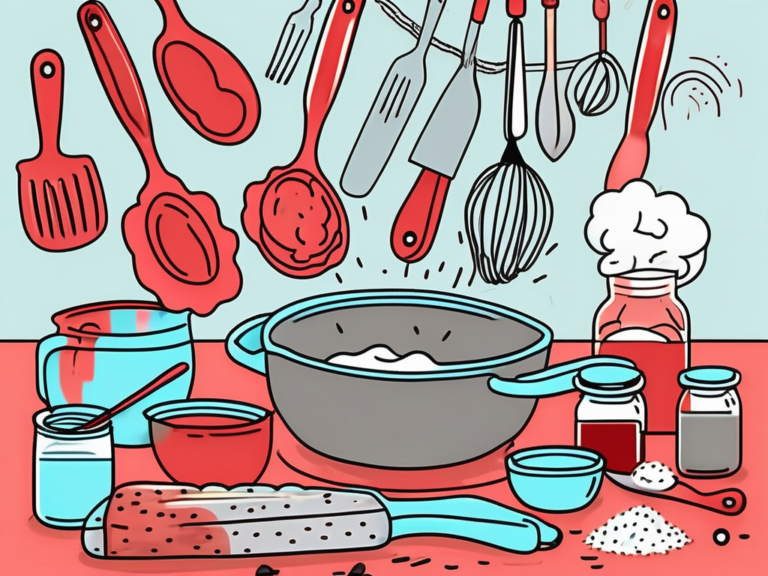 A lively kitchen scene with various baking tools